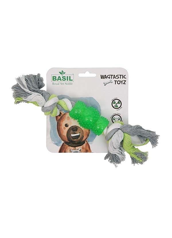 Basil Cotton Bone With Flavored Rubber Chew Dog Toy. Basil Cotton With Rubber Chew Toy is sure to keep your pet enthralled and excited for long. This rope is produced using top quality, durable cotton and has a tight looped plan to guarantee enduring use. Superb natural dyes utilized for colouring the ropes make this toy perfect for your pet to chew without agonizing over poisonous substances. This toy has frayed finishes that are certain to get your pet’s consideration. This toy is ideal for small and medium breed dog toys for any age. It helps to clean the teeth and reduce tartar and plaque off your dog.