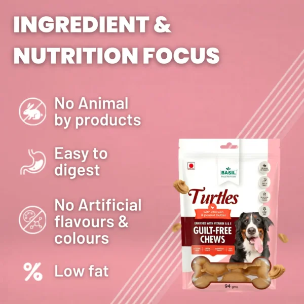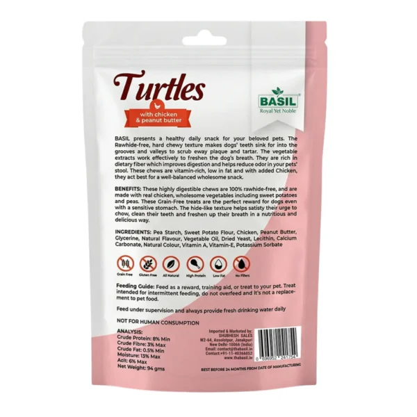 Buy BASIL Turtle Peanut Butter Treats 94g online in India. Fun, chewy, and interactive snacks for dogs and puppies, perfect for training and rewards.