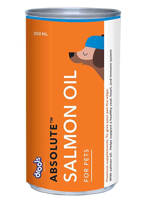Drools Absolute Salmon Oil provides a daily supply of EPA and DHA – the best Omega-3 fatty acids. Most dogs’ metabolism uses these nutrients immediately without any prior conversion. Therefore this supplement provides a better value of EPA and DHA than plant-based substitutes to support healthy skin, coat and nerve-based functions like cognition and vision. It also boosts the immune system and provides support to joint health for keeping your dog healthy.
